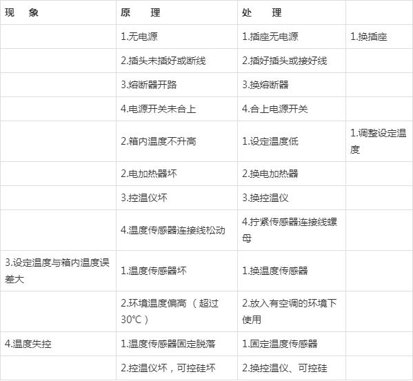箱體采用優(yōu)質(zhì)冷軋鋼板,表面靜電粉末噴涂,涂層堅(jiān)硬牢固,具有極強(qiáng)的防銹能力。工作室為優(yōu)質(zhì)冷軋鋼板,圓角造型、光滑、流暢、極易清潔。箱體與工作室之間,充填超細(xì)玻璃棉隔熱材料,具有良好的保溫功能,有效保證箱內(nèi)溫度的穩(wěn)定準(zhǔn)確和對(duì)使用環(huán)境的影響。箱內(nèi)設(shè)計(jì)有合理的熱風(fēng)循環(huán)通道,使箱內(nèi)溫度分布更加均勻、溫度上升更快;并裝有出風(fēng)管,用以微量排出箱內(nèi)的空氣。如箱內(nèi)排出的氣體有異味或有毒,出風(fēng)管能方便的另接管道將氣體排至指定地點(diǎn)。溫度控制采用微電腦智能數(shù)字技術(shù)制造,具有工業(yè)PID自整定和四位雙LED窗指示功能,控溫精度高、抗干擾能力極強(qiáng),并且操作也非常方便。采用耐高溫硅膠作密封門邊,高溫發(fā)熱作發(fā)熱元件,確保安全,使用壽命更長;符合人體工程學(xué)的扣緊式拉手,方便操作,且確保密封性。三、故障維修處理