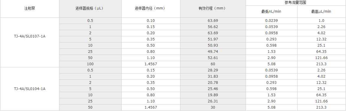 注:此表中SL0107-1A 配上海高鴿標(biāo)準(zhǔn)進(jìn)樣器