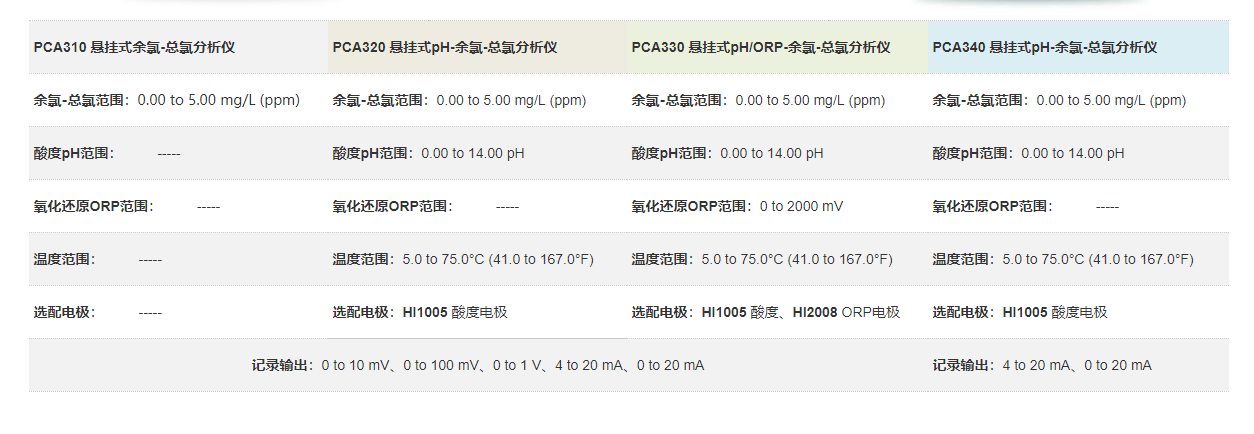 余氯-總氯技術(shù)指標(biāo)【適用于PCA310、PCA320、PCA330、PCA340】