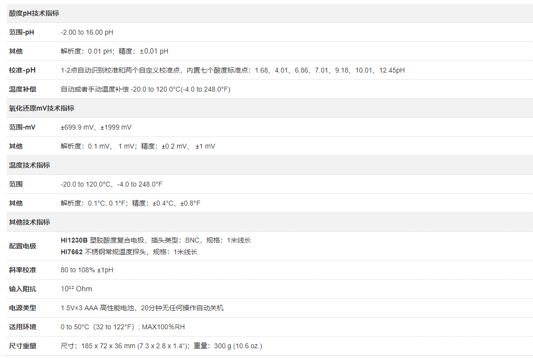 HI9126主機(jī),HI1230B 塑膠復(fù)合酸度電極,HI7662 不銹鋼溫度探頭,酸度標(biāo)準(zhǔn)緩沖液套裝(標(biāo)準(zhǔn)值@25°C:4.01pH、7.01 pH 和常規(guī)電極清洗液,規(guī)格:20mL,袋裝),HI740036P 塑料刻度燒杯(100mL、1個(gè)),中英文使用說明書,HI721046 定制專用攜帶箱。