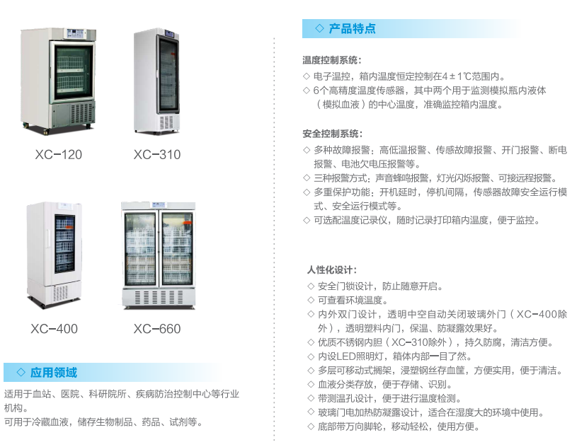 ● 內(nèi)外雙門設(shè)計,透明中空自動關(guān)閉玻璃外門(XC-400除外),透明塑料內(nèi)門,保溫、防凝露效果好。