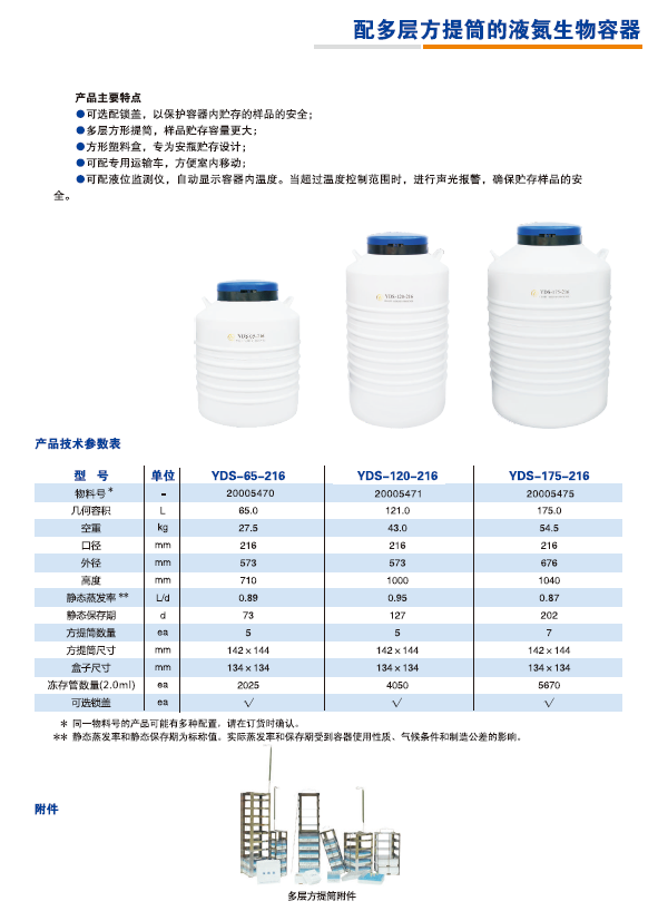 > 成都金鳳多層方提桶的液氮生物容器YDS-120-216