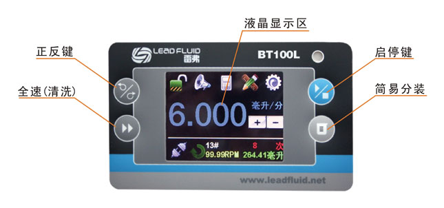 BT100L流量型智能蠕動泵流量范圍0.00011~720毫升/分鐘。采用彩色液晶和觸摸屏技術(shù),操作界面簡單,直觀,明了。主要適用于精準(zhǔn)流量傳輸控制,用戶可以根據(jù)自己的需要流量顯示,流量控制,流量累計。同時本產(chǎn)品實現(xiàn)了重復(fù)定時定量傳輸。適用于精確計量和定量給料,精度最高可達(dá)0.5%,為了減小不必要的蠕動泵噪音,采用了智能溫控技術(shù)。在RS485通訊中,因為采用了MODBUS協(xié)議,更易于與其他控制設(shè)備如計算機,人機界面,PLC等連接。
