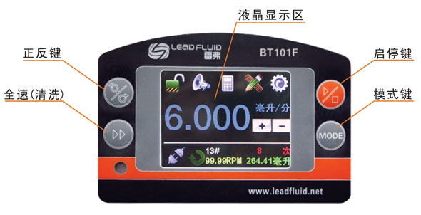 BT101F分配型智能蠕動(dòng)泵流量范圍0.00011~720毫升/分鐘。采用彩色液晶和觸摸屏技術(shù),操作界面簡(jiǎn)單,直觀,明了。主要適用于各種復(fù)雜的液體定量分配,適用于精確計(jì)量和定量給料,可以實(shí)現(xiàn)高精度的流量傳輸控制。對(duì)液量分裝精度要求高時(shí),使用液量分配模式更加方便;對(duì)產(chǎn)量要求高時(shí),使用時(shí)間分配模式更加方便;需要將一定液體分裝為若干份液體時(shí)請(qǐng)使用復(fù)制分配模式。設(shè)置為流量模式時(shí),完全等同于一臺(tái)流量型蠕動(dòng)泵。為了減小不必要的風(fēng)扇噪音,采用了智能溫控技術(shù)。在RS485通訊中,因?yàn)椴捎昧薓ODBUS協(xié)議,更易于與其他控制設(shè)備如計(jì)算機(jī),人機(jī)界面,PLC等連接。