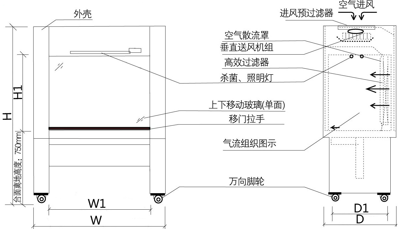 人性化的設(shè)計充分考慮到用戶的實際需求,根據(jù)配重平衡式結(jié)構(gòu)可使操作窗口的玻璃移門實現(xiàn)任意定位,令實驗更方便簡易,其中開放式工作平臺沒有玻璃移門。
