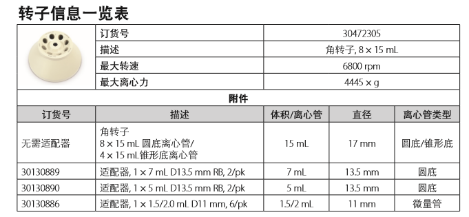 最大處理量(轉(zhuǎn)子):8 × 15 mL 圓形管 / 4 × 15 mL 錐形管